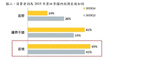 - 45%消費者看壞2019年第四季國內經濟景氣