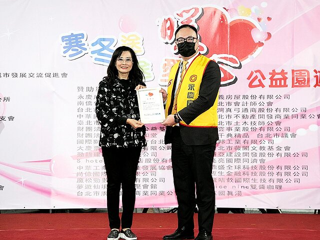 台北市議員秦慧珠感謝永慶房屋熱心公益。