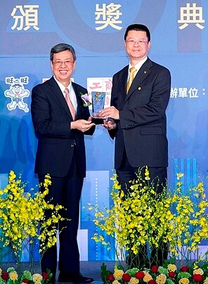 永慶房產集團業務總經理葉凌棋(圖右),從中華民國副總統陳建仁手中,領取2017台灣服務業評鑑第一名的獎座